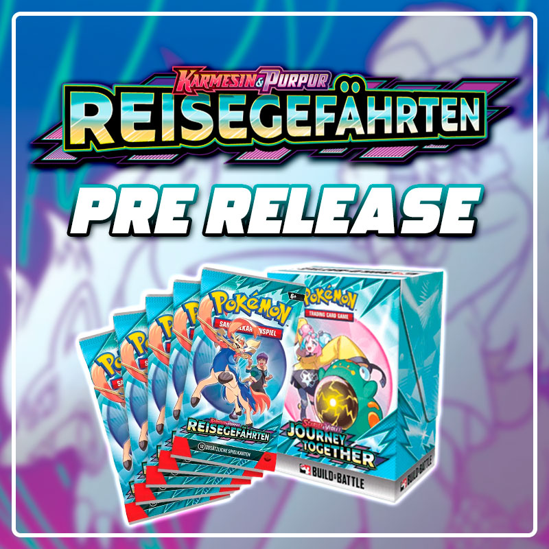 Du erhältst ein Pokémon Karmesin & Purpur "Reisegefährten" Build & Battle Kit (40 Karten Deck + 4 Booster) zum Start, mit welchem du das Turnier bestreiten wirst. Es wird im Prerelease Format gespielt und die Rundenzahl richtet sich nach der Anzahl der teilnehmenden Spieler.
