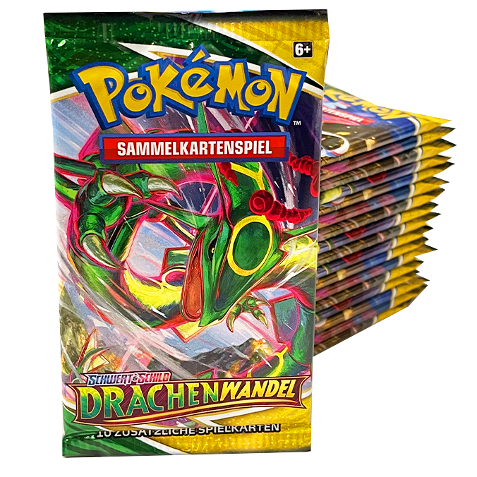 - 18 originale Booster Pack der Sammelkartenspielerweiterung „Schwert & Schild Drachenwandel“ - enthalten jeweils 10 zusätzliche Sammelkarten