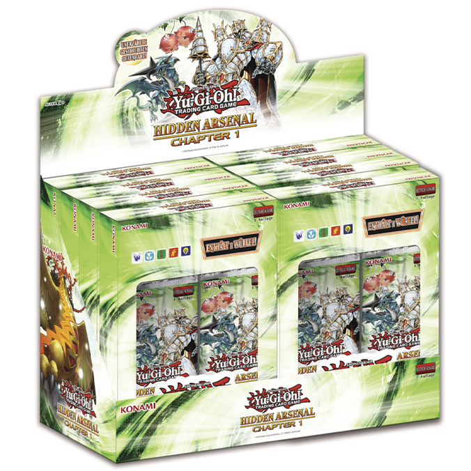 Erfahre von den Legenden und erlebe die Geschichte von Anfang an in Hidden Arsenal: Chapter 1! Es ist mehr als ein Jahrzehnt her, seitdem die Ära von Hidden Arsenal begonnen hat, und jetzt bietet diese epische Kollektion Duellanten die Möglichkeit, historische Karten aus den ersten vier Sets von Hidden Arsenal zu erwerben, in einer Form, in der man sie noch nie zuvor gesehen hat, und ihre Hintergrundgeschichten zu erfahren.Verbessere die Eisbarrieren-Strategie des Structure Deck: Freezing Chains mit noch mehr “Eisbarriere”-Karten! Überflute das Feld mit der Armee der Eisbarriere!Sichere dein Sagenhaft-Deck mit vielen Karten, die ein Muss für jede Sagenhaft-Strategie sind! Nutze die Vorteile beim Abwerfen von Karten und erhalte mächtige Effekte! Mache Gebrauch von den neuen “Sagenhaft”-Karten, die Teil von Blazing Vortex waren!Ghosts From the Past bietet jede Menge neuer Inhalte, weswegen Dracheneinheit-Duellanten die Gelegenheit nicht verpassen sollten, einige der begehrtesten “Dracheneinheit”-Karten der Ära von Hidden Arsenal zu entdecken. Schalte die Legende dieser mächtigen Winddrachen-Synchro-Strategie frei!Alle Karten der Originalversion der Hidden Arsenal-Serie waren entweder Super Rares oder Secret Rares, aber in Hidden Arsenal: Chapter 1 sind einige dieser epischen Karten durch die “Duel Terminal”-Technologie als Common oder Ultra Rares erhältlich, die jahrelang für keine Karte verfügbar war! Diese Karten waren bei Duellanten äußerst beliebt und einige der mächtigsten Karten der Geschichte des Spiels erhielten diese Versionen. Jetzt hast du wieder