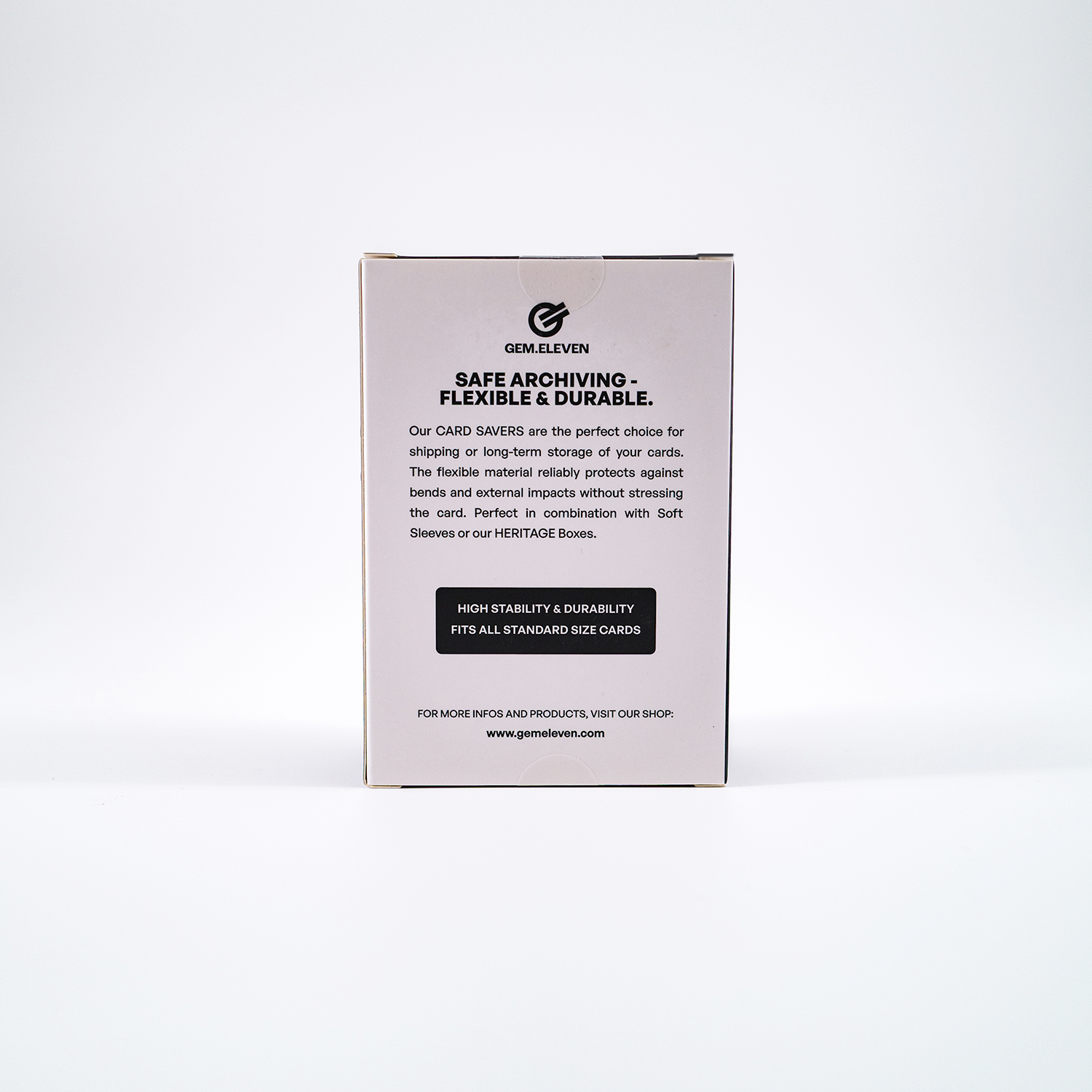 Unsere CardSavers sind die perfekte Mischung aus Stabilität und Flexibilität: klar, nicht zu starr und aus hochwertigem, kartenfreundlichem PVC gefertigt. Das transparente Material zeigt deine Karten unverfälscht, während das Format einen Rundumschutz bietet.