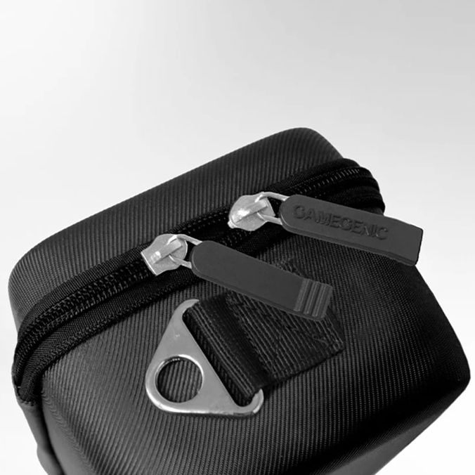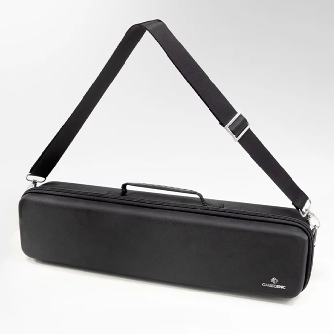 Die Game Shell XL ist ein großes tragbares Case, das Platz für mehrere Deckboxen oder eine umfangreiche Sammlung einzelner Karten bietet. Sie fasst bis zu 650 doppelt gesleevte Karten und enthält vier herausnehmbare Trenner, mit denen sich der Innenraum des Case in einzelne Fächer unterteilen lässt. So können mehrere Deckboxen, einzelne Karten oder Würfel und Tokens nach Belieben organisiert werden. Das Case besteht aus strapazierfähigem, wasser- und schmutzabweisendem Nylonmaterial. Ein verstellbarer Schultergurt und ein verstärkter Tragegriff sorgen für einen bequemen Transport.